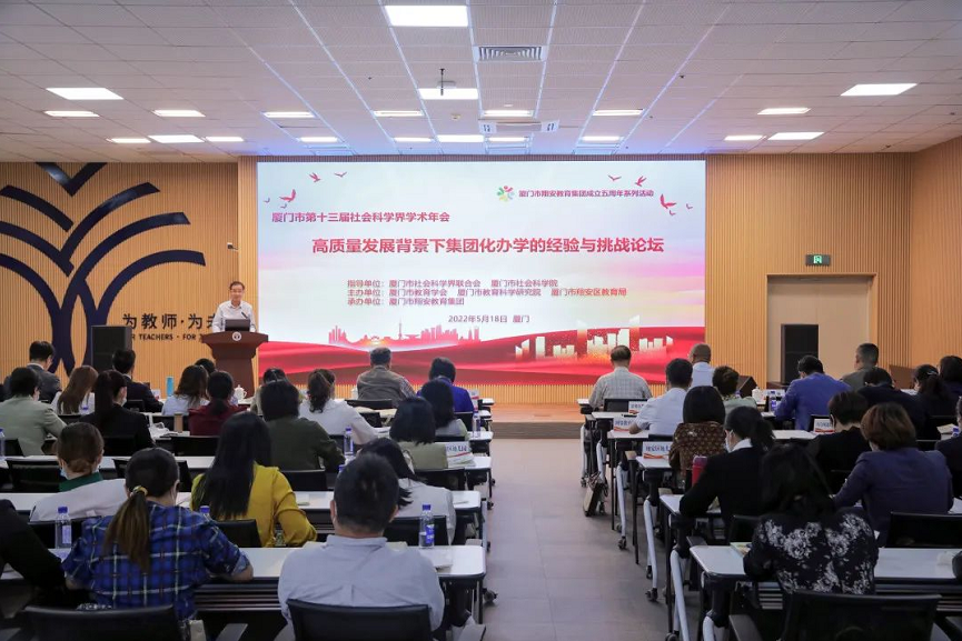 5月18日,由廈門市社會(huì)科學(xué)界聯(lián)合會(huì)、廈門市社會(huì)科學(xué)院指導(dǎo),廈門市教育學(xué)會(huì)、廈門市教育科學(xué)研究院、廈門市翔安區(qū)教育局主辦,廈門市翔安教育集團(tuán)承辦的廈門市第十三屆社會(huì)科學(xué)界學(xué)術(shù)年會(huì)“高質(zhì)量發(fā)展背景下集團(tuán)化辦學(xué)經(jīng)驗(yàn)與挑戰(zhàn)論壇”在廈門市翔安區(qū)教師進(jìn)修學(xué)校拉開帷幕。