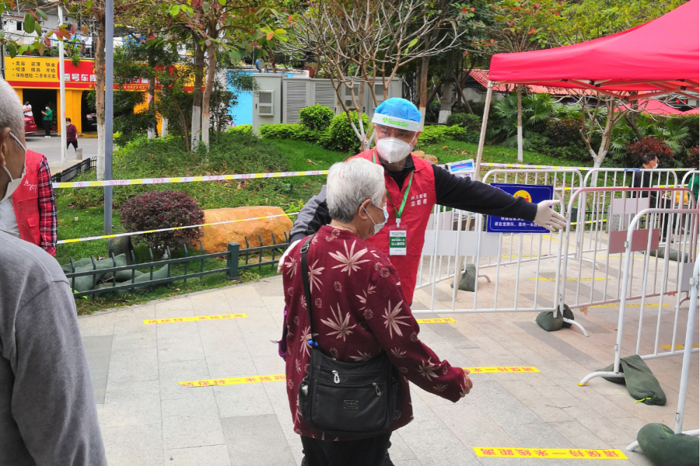 抵達(dá)社區(qū)后,他們就立刻投入緊張的核酸檢測(cè)工作,并在實(shí)際工作過(guò)程中,就掃碼查驗(yàn)等流程和分工提出合理化意見(jiàn)建議,確保核酸檢測(cè)安全有序。