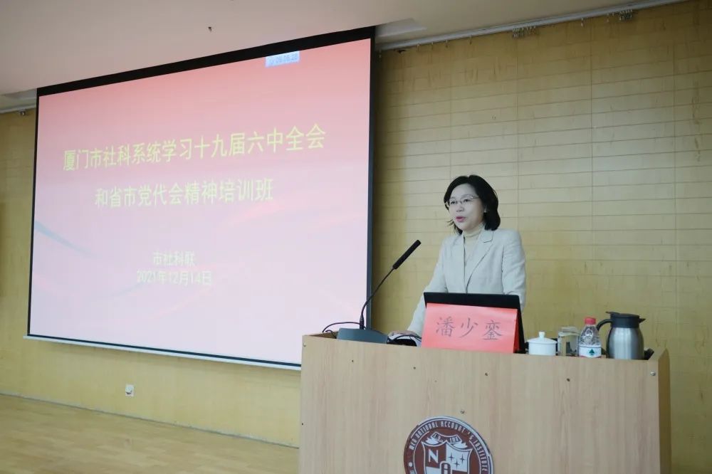 潘少鑾指出,要提高政治站位、深化思想認(rèn)識,切實把思想和行動統(tǒng)一到黨中央決策部署上來,深刻認(rèn)識總結(jié)黨的百年奮斗重大成就和歷史經(jīng)驗的重大意義,深刻認(rèn)識黨的百年奮斗的初心使命,深刻認(rèn)識中國特色社會主義進(jìn)入新時代的歷史性成就和歷史性變革,深刻認(rèn)識黨的百年奮斗歷史經(jīng)驗,深刻認(rèn)識以史為鑒、開創(chuàng)未來的重要要求,真正從黨的百年奮斗經(jīng)驗中把握歷史規(guī)律,增強(qiáng)歷史主動精神,以更加科學(xué)的理念思路方法推動新時代廈門社科工作高質(zhì)量發(fā)展。