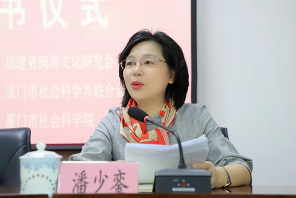 潘少鑾對(duì)福建省閩南文化研究會(huì)向廈門市社科聯(lián)、社科院贈(zèng)送書籍表示感謝,并希望繼續(xù)加強(qiáng)學(xué)術(shù)與圖書資源等方面合作。潘少鑾表示,此次贈(zèng)書活動(dòng)給廈門社科界深入貫徹習(xí)近平總書記在福建考察時(shí)的重要講話精神,積極推動(dòng)海峽兩岸以通促融、以惠促融、以情促融,不斷深化兩岸關(guān)系和平發(fā)展、融合發(fā)展路徑的理論研究,提供了重要的文獻(xiàn)資料,為進(jìn)一步深化臺(tái)灣歷史文獻(xiàn)、臺(tái)灣通史研究提供了有力的文獻(xiàn)支持。近年來,市社科聯(lián)、社科院也致力于閩南歷史文化的研究和推廣工作,先后組織編寫了閩南文化系列叢書(共10冊(cè))、閩臺(tái)歷史民俗文化遺產(chǎn)資源調(diào)查系列叢書(共13個(gè)專題)、“閩南非物質(zhì)文化遺產(chǎn)”系列叢書(共10冊(cè))以及廈門文獻(xiàn)系列五輯(共50冊(cè))等;除此之外,還立項(xiàng)資助了多個(gè)研究項(xiàng)目和兩岸交流項(xiàng)目,如去年資助出版了《東南亞閩僑民俗文化交流史》,今年11月牽頭開展了“海峽兩岸(廈門)共同精神家園暨融合發(fā)展路徑論壇”。下一步,希望能與福建省閩南文化研究會(huì)多交流、多合作,互聯(lián)互通,利用各自的資源和優(yōu)勢(shì),攜手開展閩臺(tái)文化歷史研究和交流項(xiàng)目,更好地為推進(jìn)兩岸融合發(fā)展建言獻(xiàn)策。