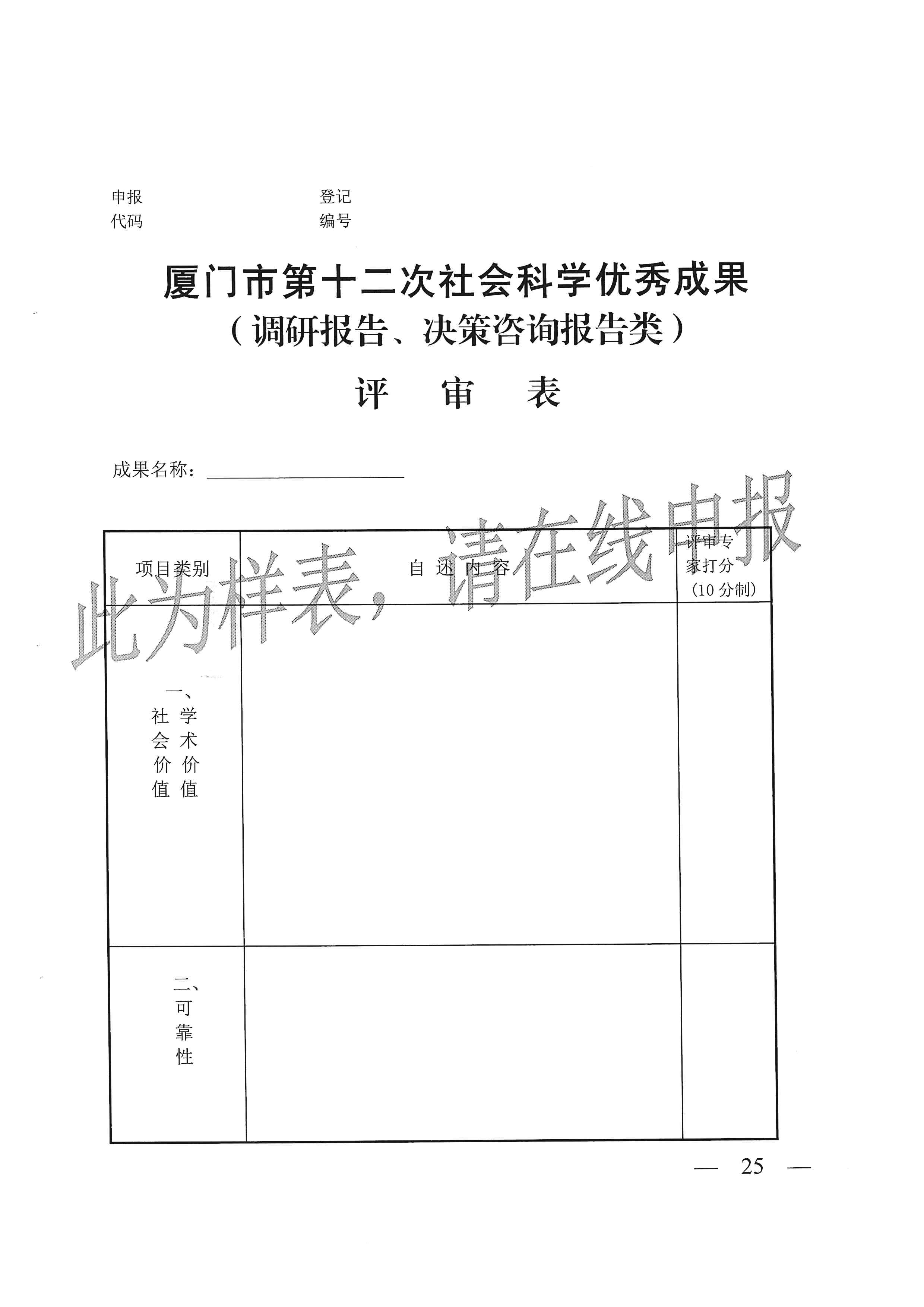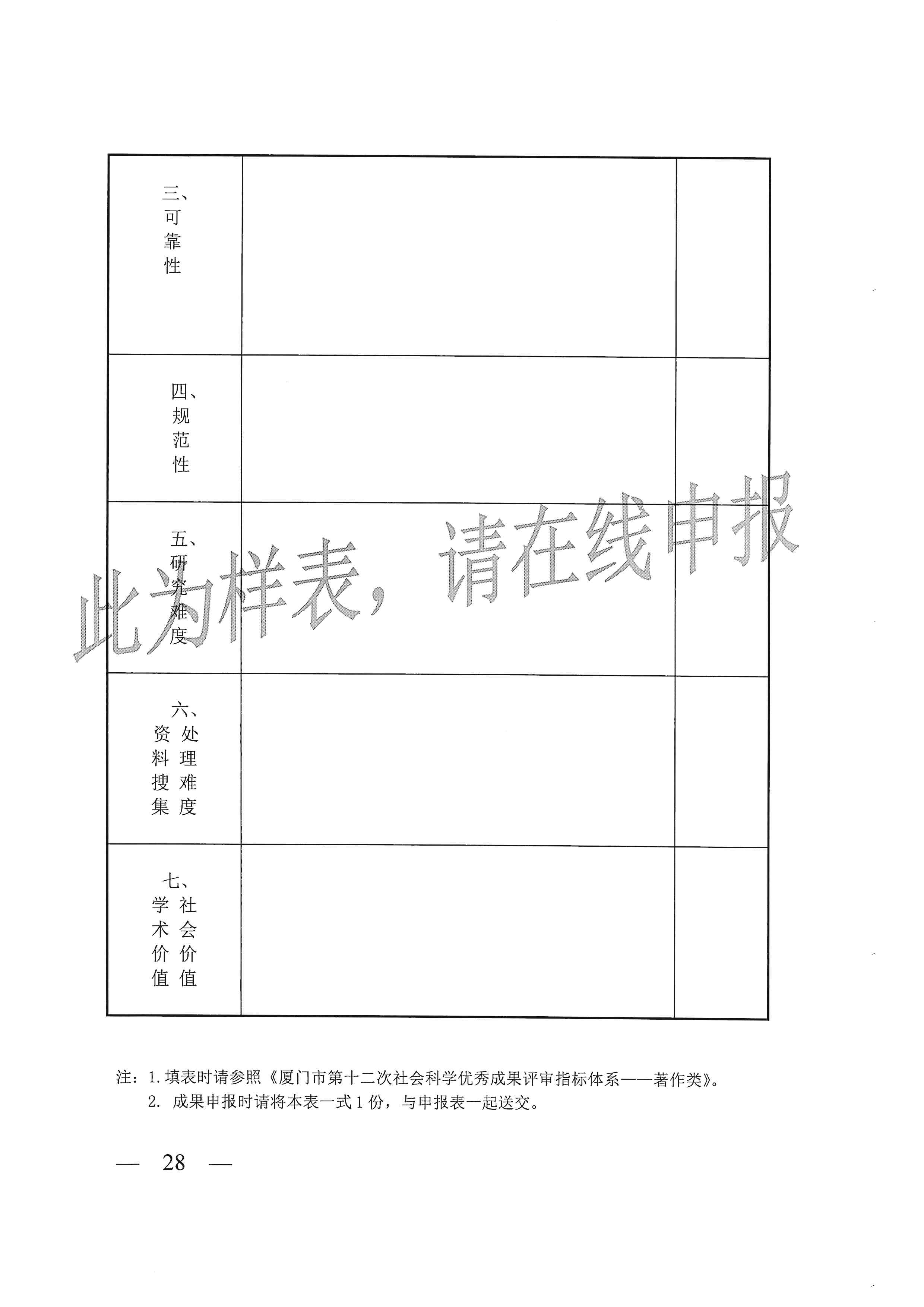 2.廈門(mén)市第十二次社會(huì)科學(xué)優(yōu)秀成果申報(bào)表(樣表)
