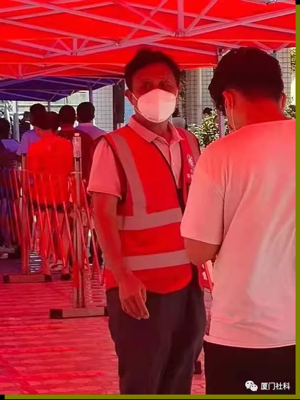 研究會(huì)副會(huì)長(zhǎng)陳世明帶領(lǐng)其單位的理事會(huì)成員積極參與抗疫,為其所在的林后社居民提供核酸檢測(cè)場(chǎng)地及配套服務(wù),協(xié)助布置場(chǎng)地,參與現(xiàn)場(chǎng)秩序維護(hù),協(xié)助測(cè)量體溫。雖年事較大,但指揮起工作來卻一點(diǎn)也不含糊,思路清晰,有井有條,在他的帶領(lǐng)下,林后社居民井然有序的完成了一次又一次的核酸檢測(cè)工作。